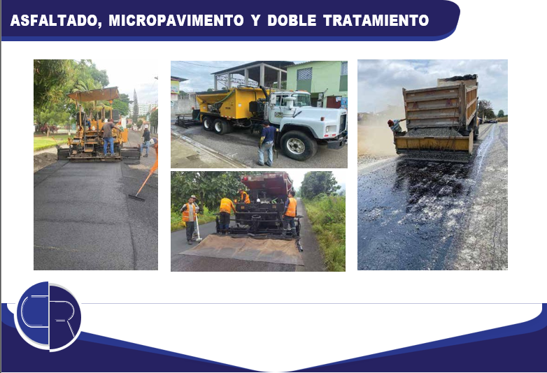 Aplicación de carpeta de rodamiento de doble tratamiento bituminoso.